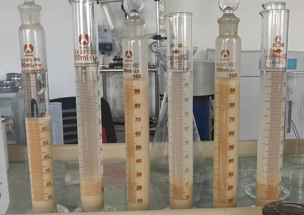 全部添加完畢后,用蒸餾水仔細沖洗黏附在量筒內(nèi)測的粉粒使其落入水中,最后將量筒內(nèi)水位增加到100ml標(biāo)線處,使用玻利塞蓋緊。靜止24小時后,記錄沉淀物界面的量筒刻度值(沉淀物不包括低密度的膠溶或絮凝狀物質(zhì)),精確至0.5ml。