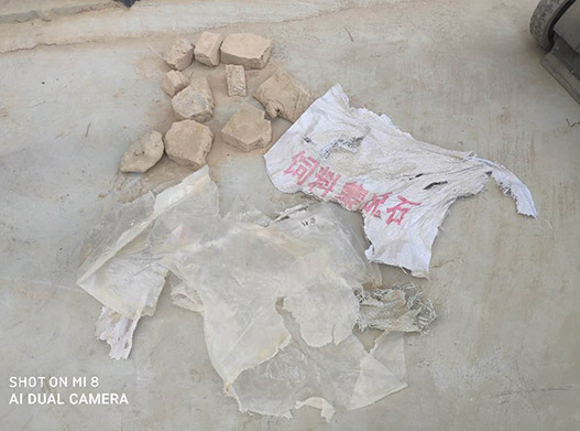 3.包裝袋不合格,這類情況一般是包裝使用的是二手大噸包,這類噸包有些有一定的爛口,為了不讓膨潤土粉末外漏,包裝工人有可能在爛口出放置塑料袋進行補漏,如果補漏的塑料袋不進行針線縫合固定,在使用膨潤土是,用來補漏的塑料袋就和膨潤土直接進入了下料口,因此就出現了想象不到的雜質。
